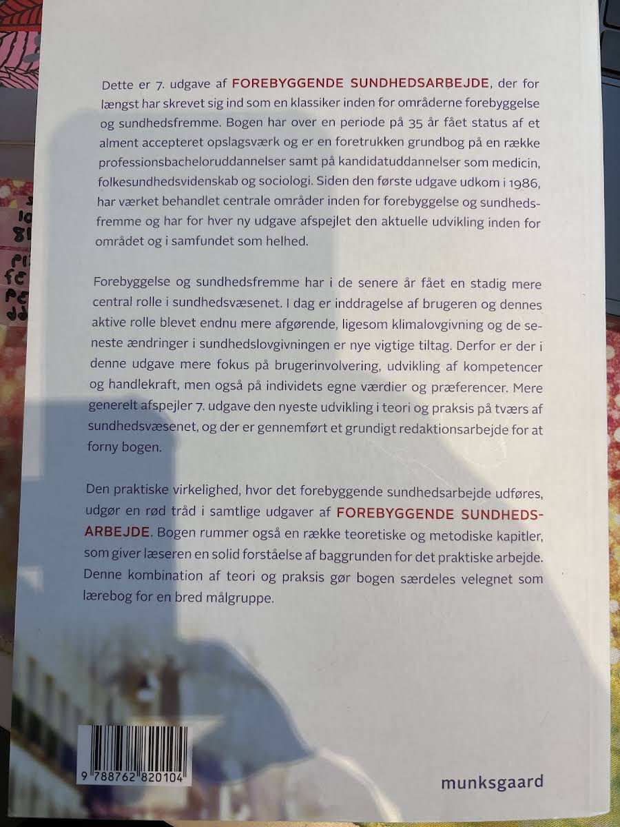 Forebyggende sundhedsarbejde i 7. udgave er et solidt og anerkendt opslagsværk inden for forebyggelse og sundhedsfremme. Med rødder helt tilbage til den første udgave i 1986 har bogen over 35 år opnået status som en klassiker, der dækker de centrale områder i feltet og fungerer som en foretrukken grundbog for både professionsbachelor- og kandidatuddannelser, herunder medicin, folkesundhedsvidenskab og sociologi. Denne udgave afspejler den seneste udvikling i sundhedsvæsenet med et øget fokus på brugerinvolvering, kompetenceudvikling og individets værdier. I takt med nye tiltag som klimalovgivning og ændringer i sundhedslovgivningen er der foretaget et grundigt redaktionsarbejde for at opdatere teorien og praksis inden for området. Med en kombination af praktiske cases og teoretiske samt metodiske kapitler giver bogen læseren et solidt fundament for at forstå og anvende det forebyggende sundhedsarbejde i forskellige sammenhænge.