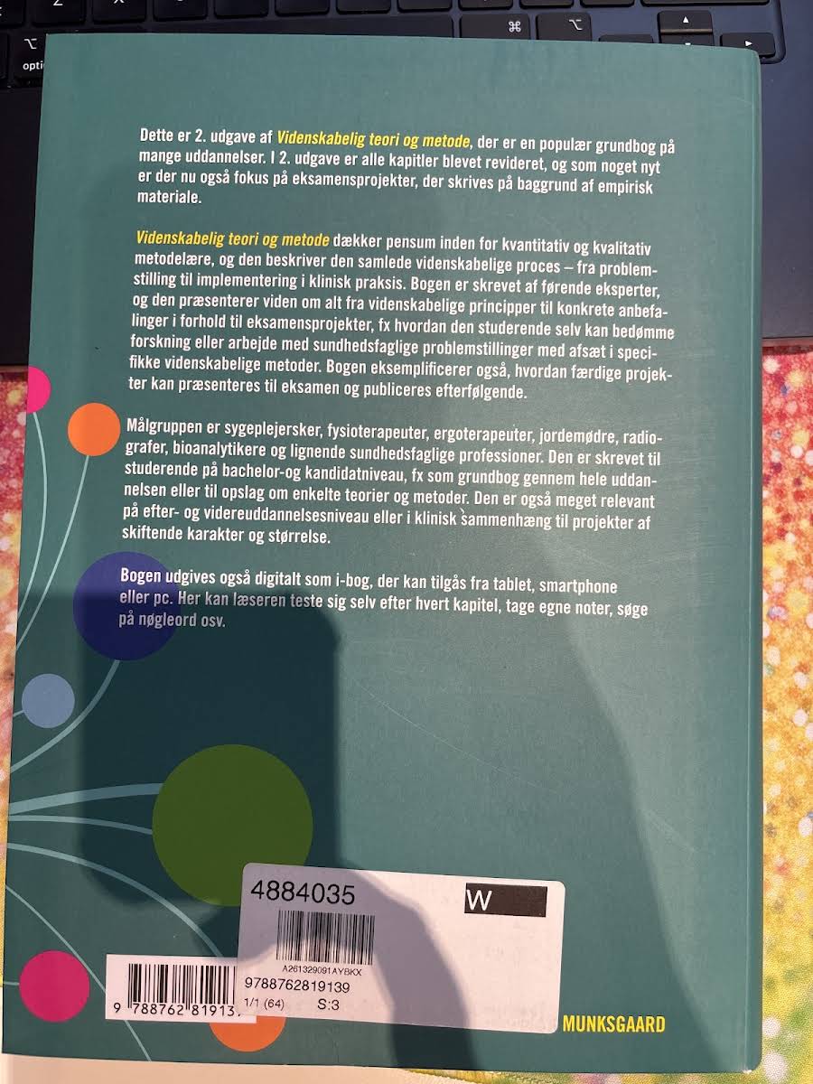 "Videnskabelig teori og metode" (2. udgave) er en anerkendt sundhedsvidenskabelig grundbog redigeret af Maria Henricson. Bogen byder på en dybdegående introduktion til teorier samt kvantitative og kvalitative metoder, der benyttes inden for sundhedsvidenskaben. Med tekster udarbejdet af førende eksperter får den studerende en klar forståelse af den videnskabelige proces – fra den oprindelige problemstilling til den praktiske implementering og evaluering. I denne opdaterede udgave er der lagt særlig vægt på eksamensprojekter, både i forhold til deres udformning og den efterfølgende formidling. Bogen retter sig mod studerende på sundhedsvidenskabelige uddannelser, herunder sygeplejersker, fysioterapeuter, jordemødre, radiografer og bioanalytikere. "Videnskabelig teori og metode" fungerer både som et fundamentalt opslag og som en praktisk guide, der støtter den studerendes videre faglige udvikling.