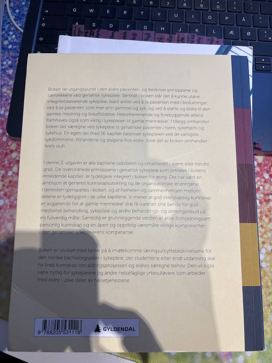 Geriatrisk sykepleie: god omsorg til den gamle pasienten (3. utg.) setter den eldre pasienten i sentrum og utforsker de grunnleggende prinsippene og særegenhetene ved geriatrisk sykepleie. Boken inneholder sixteen kapitler som gir en grundig innføring i pleie ved de vanligste sykdommene, tilstandene og plagene som rammer eldre. I den siste delen rettes fokuset mot omsorg i livets sluttfase, der integritetsbevarende sykepleie står sentralt. Her vektlegges viktigheten av å inkludere pasienten i beslutningsprosesser, å se den enkelte som mer enn bare gammel og syk, og å støtte den gamles mestring og livsutfoldelse. Helsefremmende og forebyggende tiltak understrekes som nøkkelkomponenter gjennom hele verket. I denne 3. utgaven er alle kapitlene oppdatert og omarbeidet for å integrere de overordnede prinsippene i geriatrisk sykepleie enda tydeligere.