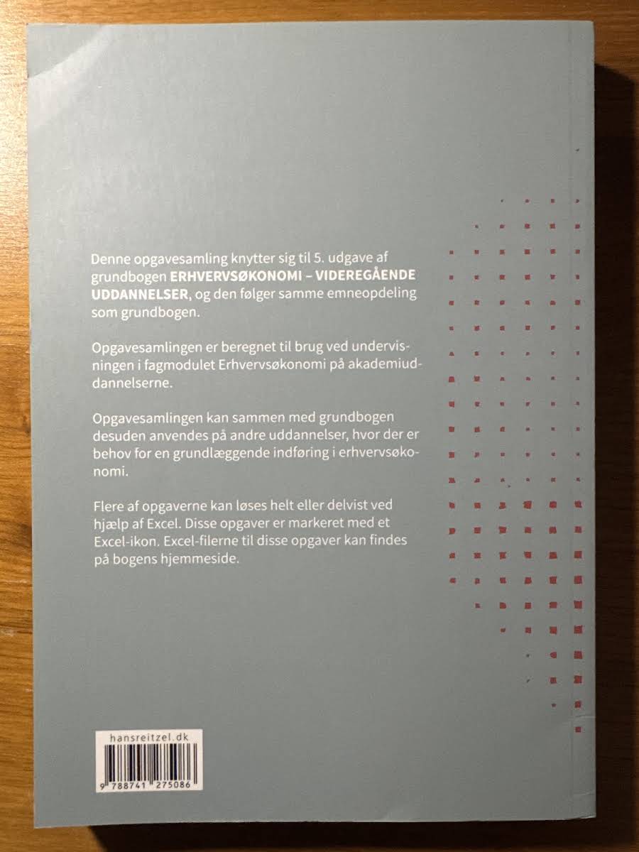 Denne opgavesamling er tilpasset den 5. udgave af grundbogen Erhvervsøkonomi – videregående uddannelser og følger nøje den samme emneopdeling. Bogen er udviklet af Bo Sundvang, Jan Furbo Sørensen og Knud Erik Bang og er designet til at understøtte undervisningen i erhvervsøkonomi på akademiuddannelserne. Med en struktureret tilgang til de centrale emner i faget, tjener denne opgavesamling som et værdifuldt redskab for studerende, der søger en grundlæggende indføring i erhvervsøkonomi. Den kan desuden anvendes i andre uddannelseskontekster, hvor et solidt fundament i emnet er påkrævet.