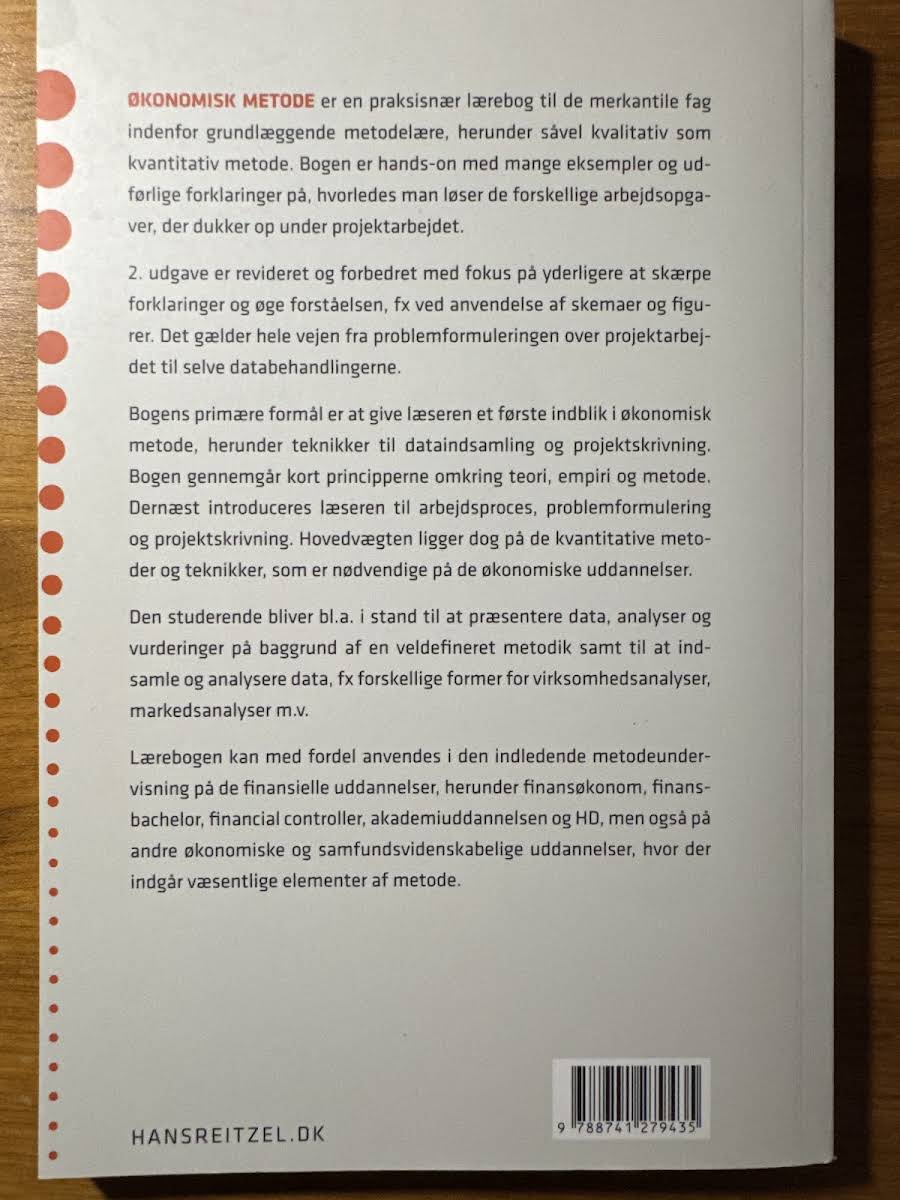 "Økonomisk metode" er en grundlæggende lærebog, der introducerer de centrale metoder inden for økonomisk analyse. Anden udgave, udgivet i 2020 af Hans Reitzel, omfatter 152 sider med fokus på både kvalitativ og kvantitativ metode og henvender sig primært til studerende på de finansielle uddannelser. Bogen hjælper den studerende med at opbygge en solid metodik til at indsamle, bearbejde og præsentere data - fra virksomhedsanalyser til markedsvurderinger. Ved at inddrage elementer som problemformulering, projektledelse, planlægning og gruppearbejde giver "Økonomisk metode" en praktisk og velstruktureret tilgang til economic research, der understøtter den akademiske undervisning på området.