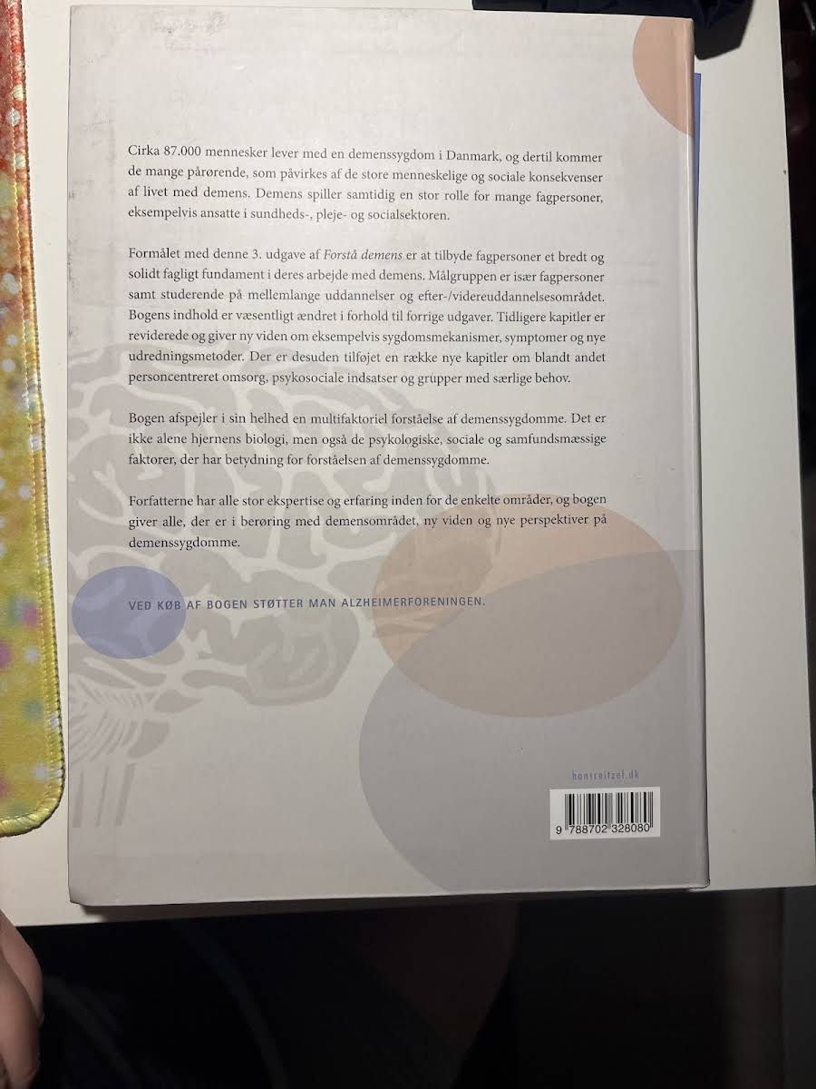 Med omkring 87.000 danskere, som lever med en demenssygdom, og de mange pårørende, som mærker de omfattende konsekvenser, bliver kendskab til demens mere aktuelt end nogensinde. Bogen "Forstå demens" dykker ned i de udfordringer, som både individer og samfundet står overfor, og giver et indblik i, hvordan demens påvirker livet på flere niveauer. I denne 3. udgave fra 2022 præsenteres et solidt fagligt fundament rettet mod fagpersoner og studerende inden for sundheds-, pleje- og socialsektoren samt mellem- og videreuddannelser. Gennem omfattende revision af tidligere kapitler og introduktionen af nye afsnit om for eksempel personcentreret omsorg, psykosociale tiltag og grupper med særlige behov, opdaterer forfatterne eksisterende viden om sygdomsmekanismer, symptomer og moderne udredningsmetoder. Bogen indfanger en multifaktoriel forståelse af demens, hvor både hjernens biologi, psykiske dimensioner, sociale forhold og samfundsmæssige faktorer spiller ind. Med forfatternes samlede ekspertise får læseren nye perspektiver og redskaber til at arbejde med de komplekse udfordringer, der følger med demenssygdomme. Ved at vælge denne bog bidrager man samtidig til støtte af Alzheimerforeningen og deres vigtige arbejde.