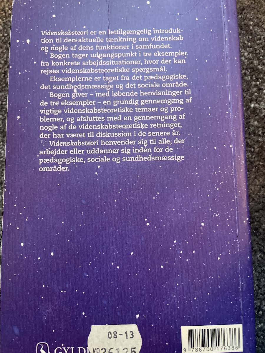 Videnskabsteori er en indsigtsfuld og lettilgængelig introduktion til, hvordan videnskab opfattes og fungerer i vores samfund. Med udgangspunkt i konkrete eksempler fra pædagogiske, sundhedsmæssige og sociale arbejdsmiljøer illustrerer bogen, hvordan videnskabsteoretiske spørgsmål kan opstå i praksis. Gennem en systematisk gennemgang af centrale temaer og problemstillinger belyser forfatterne de metoder og teorier, der har formet moderne tænkning om videnskab. Bogen afsluttes med en diskussion af nogle af de nyere videnskabsteoretiske strømninger og henvender sig til læsere, der beskæftiger sig med analyse og refleksion inden for forskellige professionelle områder.