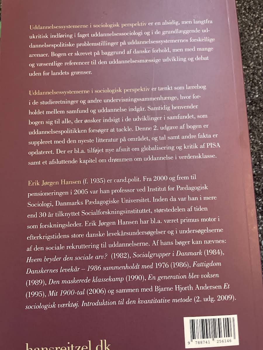 Uddannelsessystemerne i sociologisk perspektiv giver en nuanceret gennemgang af uddannelsessociologi med udgangspunkt i de uddannelsespolitiske udfordringer, der præger det moderne samfund. Erik Jørgen Hansen formår at kaste lys over, hvordan uddannelsessystemerne både formes af og former samfundets udvikling, idet han sætter problemstillingerne i relief af aktuelle danske forhold under hensyntagen til internationale perspektiver. Bogen henvender sig til studerende og andre interesserede, der ønsker en grundig indføring i de centrale aspekter af uddannelsessociologi. Med en kritisk tilgang til de emner, som uddannelsespolitikken berører, kombinerer bogen opdaterede tal og ny forskning, hvilket sikrer læseren et solidt fundament for forståelsen af de mange sider af uddannelsessystemerne. I denne udgave fra 2011 udstiller Hansen, hvordan globalisering og nye tendenser påvirker debatten om uddannelse. Uddannelsessystemerne i sociologisk perspektiv er derfor et vigtigt redskab for alle, der ønsker at dykke ned i forholdet mellem uddannelse, samfund og forandring.