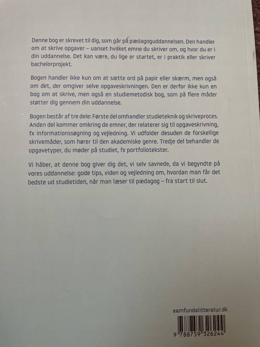 Denne bog er skrevet til dig, der er en del af pædagoguddannelsen – uanset om du er ny på studiet, i praktik, eller er ved at skrive bachelorprojektet. Jakob Matthiesen og Marianne Eskebæk Larsen giver dig et praktisk og metodisk redskab, der dykker ned i hele skriveprocessen. Her finder du både teoretiske redskaber og konkrete tips til at styrke din akademiske skrivekompetence, så du får det bedste ud af din studietid. Bogen er inddelt i tre dele, der tilsammen skaber en helhedsforståelse af opgaveskrivning. Den første del fokuserer på studieteknikker og selve skriveprocessen, som udgør fundamentet for dine opgaver. I den anden del behandles vigtige emner som informationssøgning, akademisk vejledning og de forskellige skrivestile, der er relevante for pædagogiske opgaver. Den sidste del giver en grundig gennemgang af de opgavetyper, du møder på din uddannelse, og tilbyder praktiske eksempler, der kan inspirere dig til at mestre faget fra start til slut.