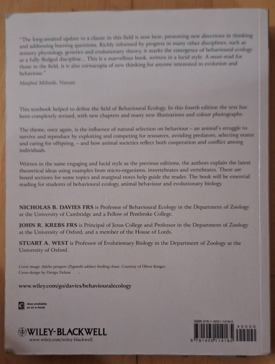 • An Introduction to Behavioural Ecology, Nicholas B. Davies, John R. Krebs, Stuart A. West, 9781405114165