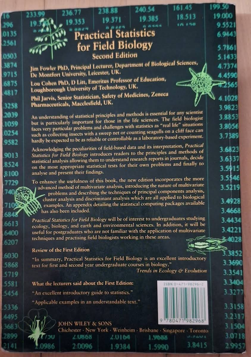 Practical Statistics for Field Biology by Jim Fowler, Lou Cohen, and Philip Jarvis offers an accessible and practical introduction to the methods of statistical analysis tailored specifically for the life sciences. This book provides clear guidance in selecting and applying statistical tests to tackle the unique challenges that arise when dealing with data gathered in the field, whether you’re counting seagulls on a cliff or sampling insects with a sweep net. Acknowledging that field-based research often produces data with unpredictable nuances, the authors explain the principles of statistical analysis in a way that bridges the gap between theory and practice. Readers will learn to navigate both simple techniques and more advanced methods, including principal components analysis, cluster analysis, and discriminant analysis, all illustrated with relevant biological examples. With its concise presentation and practical examples, Practical Statistics for Field Biology is a valuable resource for undergraduates studying ecology, biology, and environmental sciences, as well as postgraduates and practicing field biologists looking to enhance their analytical skills.