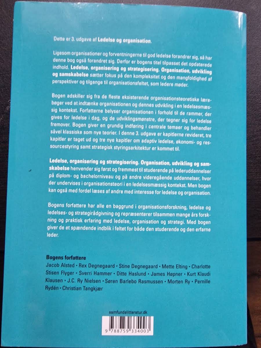 "Ledelse, organisering og strategisering" er allerede blevet en fast reference inden for virksomhedsledelse, og i denne tredje udgave kombineres teoretisk dybde med praktiske eksempler, der sætter fokus på de stadigt foranderlige rammer for ledelse og organisation. Mette Elting formidler med skarpsindighed, hvordan organisationens udvikling løbende påvirker de forventninger, der stilles til ledelsesprocesser. I denne opdaterede udgave er indholdet revideret for at afspejle samtidens krav med tre nye kapitler om økonomistyring, strategisk styringsarkitektur og adaptiv ledelse, mens tre ældre kapitler er blevet udskiftet. Bogen præsenterer et bredt spektrum af både klassiske og moderne teorier og giver dermed en grundig indføring i, hvordan komplekse og mangfoldige perspektiver i organisationslivet kan forstås og anvendes. Velegnet til studerende på lederuddannelser og andre med interesse for ledelse og organisation, tilbyder "Ledelse, organisering og strategisering" et solidt fundament, der kombinerer akademisk forskning med praktisk anvendelighed. Samfundslitteraturs udgave fra 2019 er et uundværligt værktøj for alle, som ønsker at navigere i og forstå det dynamiske felt af ledelse og organisationsudvikling.