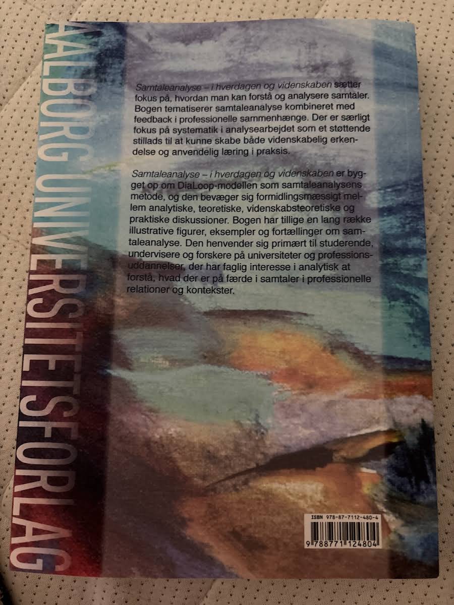 Samtaleanalyse udfolder en dybdegående tilgang til forståelsen af, hvordan vi kan observere og analysere de samtaler, der præger både hverdagen og de professionelle arenaer. Bogen kombinerer et teoretisk fundament med praktiske redskaber, der understøtter systematisk analysearbejde og muliggør en omsætning af videnskabelig indsigt til brugbar læring. Med udgangspunkt i DiaLoop-modellen guider forfatterne – Helle Alrø, Poul Nørgård Dahl og Katrine Schumann – læseren gennem en række analytiske, teoretiske og praktiske diskussioner. Illustrative figurer, eksempler og fortællinger supplerer metodebeskrivelserne og gør det muligt at anvende samtaleanalysen både i forskning og undervisning. Bogen henvender sig særligt til studerende, undervisere og forskere, der med et analytisk blik ønsker at forstå indviklede kommunikationsmønstre i professionelle relationer og kontekster.