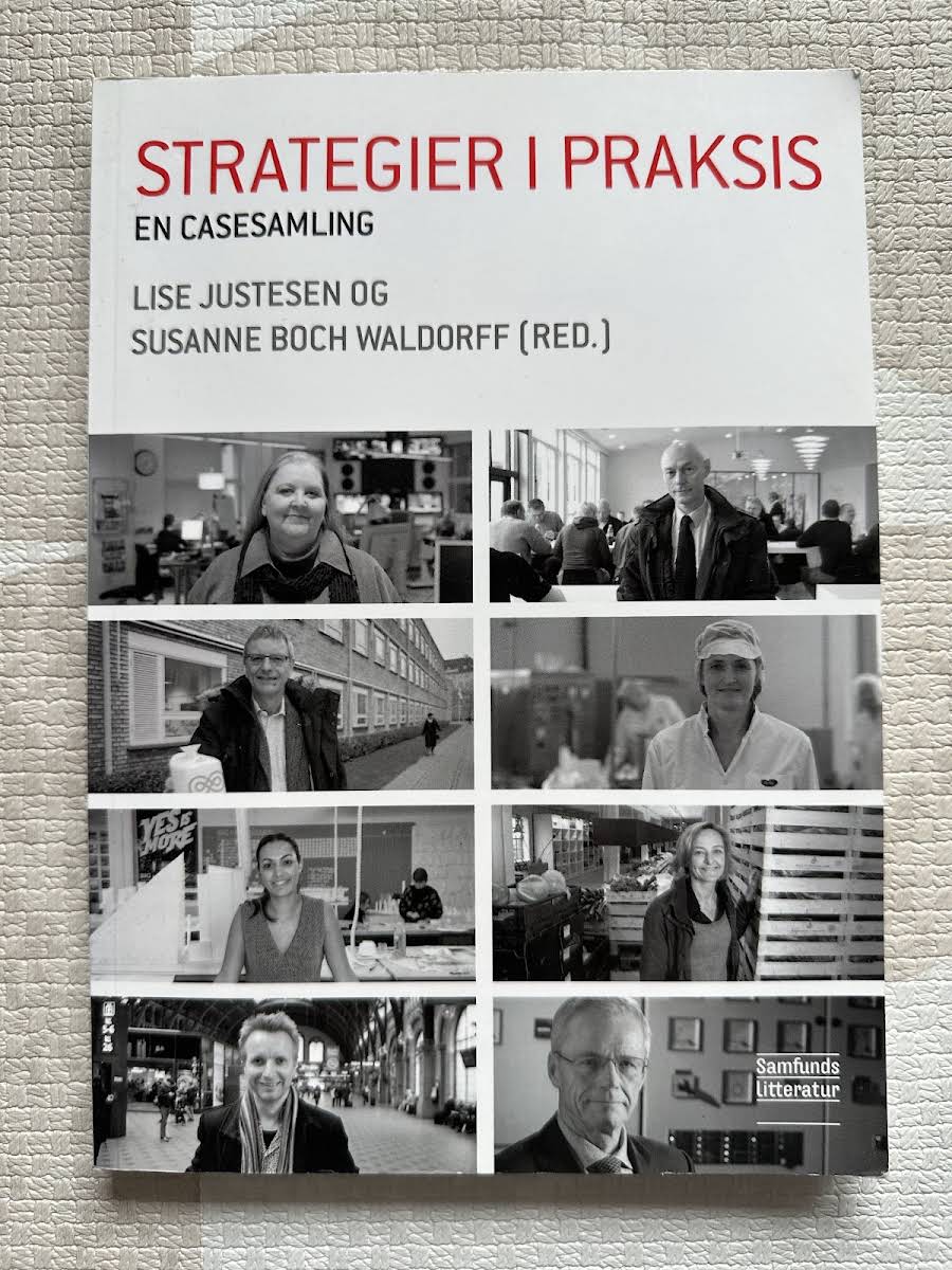 I Strategier i praksis – en casesamling udforskes, hvordan moderne organisationer griber strategiarbejdet an i virkeligheden. Med udgangspunkt i otte nøje udvalgte cases opfordres læseren til at overføre teoretisk viden til praksisnære problemstillinger. Bogen fungerer særligt godt som et redskab i strategiundervisningen, hvor dybdegående analyser af konkrete cases danner rammen om læring og refleksion. Casene spænder over organisationer som DONG Energy, BIG, Copenhagen Phil/Sjællands Symfoniorkester, Berlingske Media, Dansk Politi, Arla, Kræften Bekæmpelse og Aarstiderne, og illustrerer, hvordan forskellige kontekster afgør tilgangen til strategiarbejdet. Yderligere suppleres indsigterne med videointerviews med topledere fra de omtalte organisationer – videomaterialet er gratis og offentligt tilgængeligt via CBS’ website.