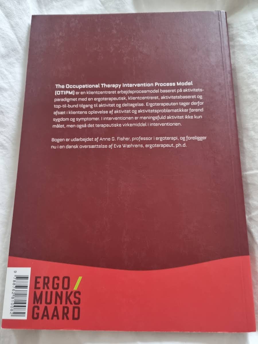 "Otipm" er en bog af Anne G. Fisher, der introducerer en helhedsorienteret model til planlægning og implementering af klientcentrerede, aktivitetsbaserede interventioner. Modellen, som forudsætter en top-til-bund tilgang, tager udgangspunkt i klientens oplevelser af aktivitet og fokuserer på at integrere meningsfuld aktivitet som både mål og terapeutisk virkemiddel. I bogen vægtes det, at interventionen skal baseres på klientens perspektiv og de individuelle aktivitetsproblematikker, frem for blot at adressere sygdom og symptomer. Anne G. Fisher, der er professor i ergoterapi, præsenterer med faglig ekspertise strategier og metoder, der understøtter en praksis, hvor aktivitet og deltagelse er centrale elementer i den terapeutiske proces. Publikationen fra 2012 udgivet af Munksgaard er en værdifuld ressource for alle, der arbejder med ergoterapi og klientcentrerede interventioner.