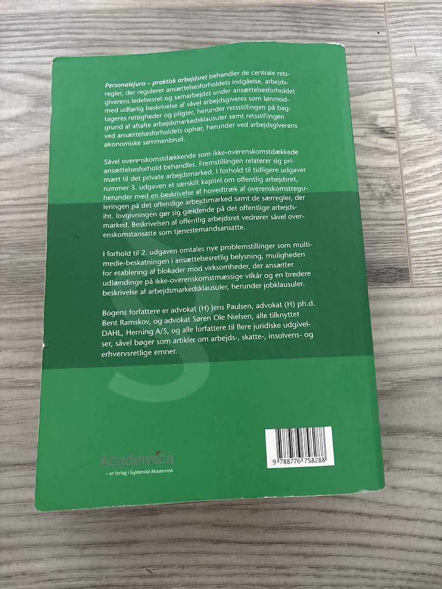 • Personalejura - praktisk arbejdsret, Jens Paulsen, Bent Ramskov, Søren Ole Nielsen, 9788776758288