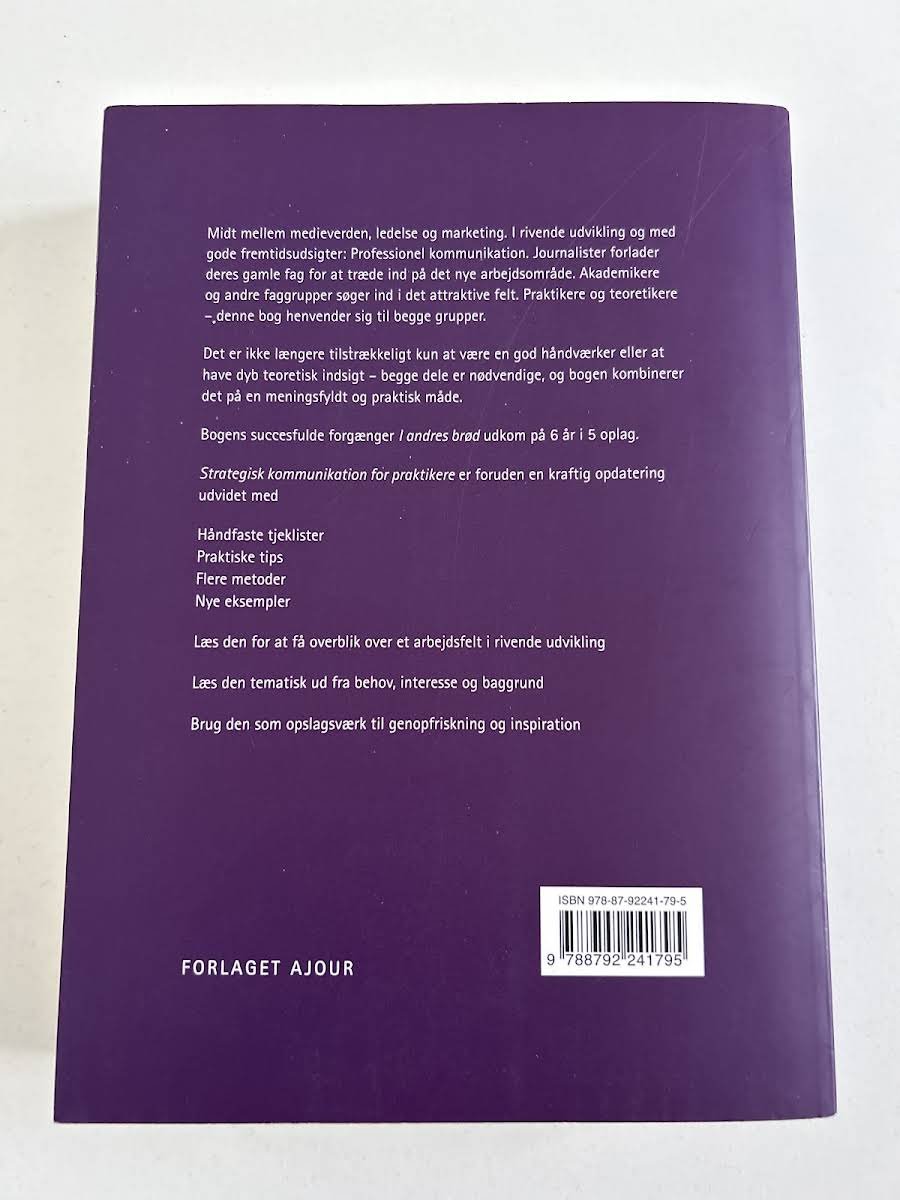 "Strategisk kommunikation for praktikere" er udarbejdet som et svar på den hurtige udvikling inden for kommunikationsbranchen, hvor journalister i stigende grad befinder sig i roller, der kræver en anden tilgang og viden. Bogen rækker ud til praktikere – uanset baggrund – og tilbyder en praktisk vejledning til at navigere i en ny og kompleks virkelighed. Med en række håndfaste tjeklister, praktiske tips, metodiske værktøjer og illustrative eksempler hjælper Jens Otto Kjær Hansen og Hanne Birgitte Jørgensen læseren med at forstå og anvende de strategiske elementer i kommunikationsarbejdet. Bogen besvarer de centrale spørgsmål: Hvad skal man vide? Hvad skal man overveje? Hvordan gør man? Denne udgave fokuserer på at skabe klarhed og overblik, så praktikerne kan tage styringen i deres nye roller med selvtillid og kompetence. "Strategisk kommunikation for praktikere" er et uundværligt redskab for alle, der ønsker at opgradere deres kommunikationsfærdigheder til nutidens krav.