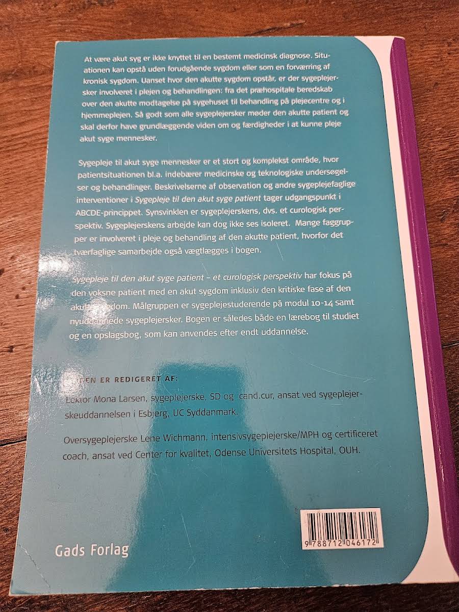 "Sygepleje til den akut syge patient – et curologisk perspektiv" giver et omfattende indblik i håndteringen af akutte tilstande, hvor både pludselige sygdomme og forværringer af kroniske lidelser behandles. Med udgangspunkt i ABCDE-princippet og et curologisk perspektiv på sygeplejen understreges vigtigheden af at kunne agere hurtigt og koordineret. Mona Larsen formidler her essentielle strategier og interventioner, der støtter sygeplejerskens rolle i den multidisciplinære behandling af voksne patienter i den kritiske fase. Bogen henvender sig særligt til sygeplejestuderende og nyuddannede sygeplejersker, men fungerer også som et praktisk opslagsværk i det videre professionelle virke. Den indeholder en grundig redegørelse for de vigtigste aspekter ved akut sygepleje, med fokus på den curologiske tilgang, der forener medicinske og kirurgiske elementer i patientplejen. Med sine 277 sider byder bogen på et solidt fagligt fundament, der styrker evnen til at træffe de rigtige beslutninger i de mest krævende situationer.