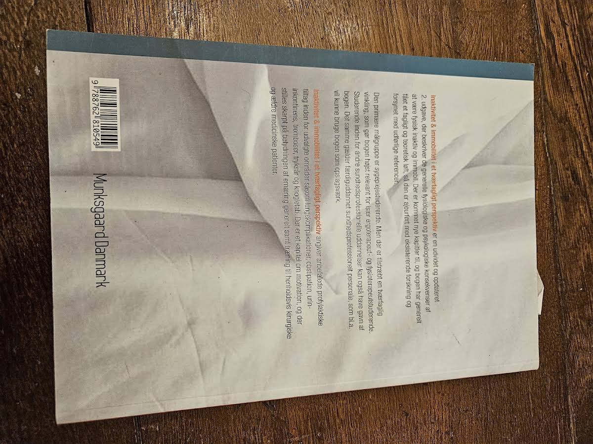 In "Inaktivitet og immobilitet i tværfagligt perspektiv" undersøges de fysiologiske og psykologiske konsekvenser af fysisk inaktivitet og immobilitet ud fra et alsidigt, tværfagligt perspektiv. Bogen afdækker aktuelle emner som lungekomplikationer, tryksår og knogletab, og giver desuden indblik i forebyggende tiltag, der kan have betydning for både kirurgiske og ældre medicinske patienter. Med sin opdaterede teoretiske tilgang og omfattende referencer er bogen ajourført med den nyeste forskning på området. Med udgangspunkt i en målgruppe, der primært omfatter sygeplejestuderende, er bogen struktureret, så den også henvender sig til faggrupper som ergoterapeuter og fysioterapi-studerende. Derudover kan både studerende og allerede uddannede sundhedsprofessionelle drage fordel af den tværfaglige vinkel, der sætter fokus på motivasjon samt ernæringens og træningens betydning i forbindelse med inaktivitet og immobilitet. Gyldendal udgiver denne 230-siders paperback fra 2010, der udgør et værdifuldt opslagsværk inden for sit felt.