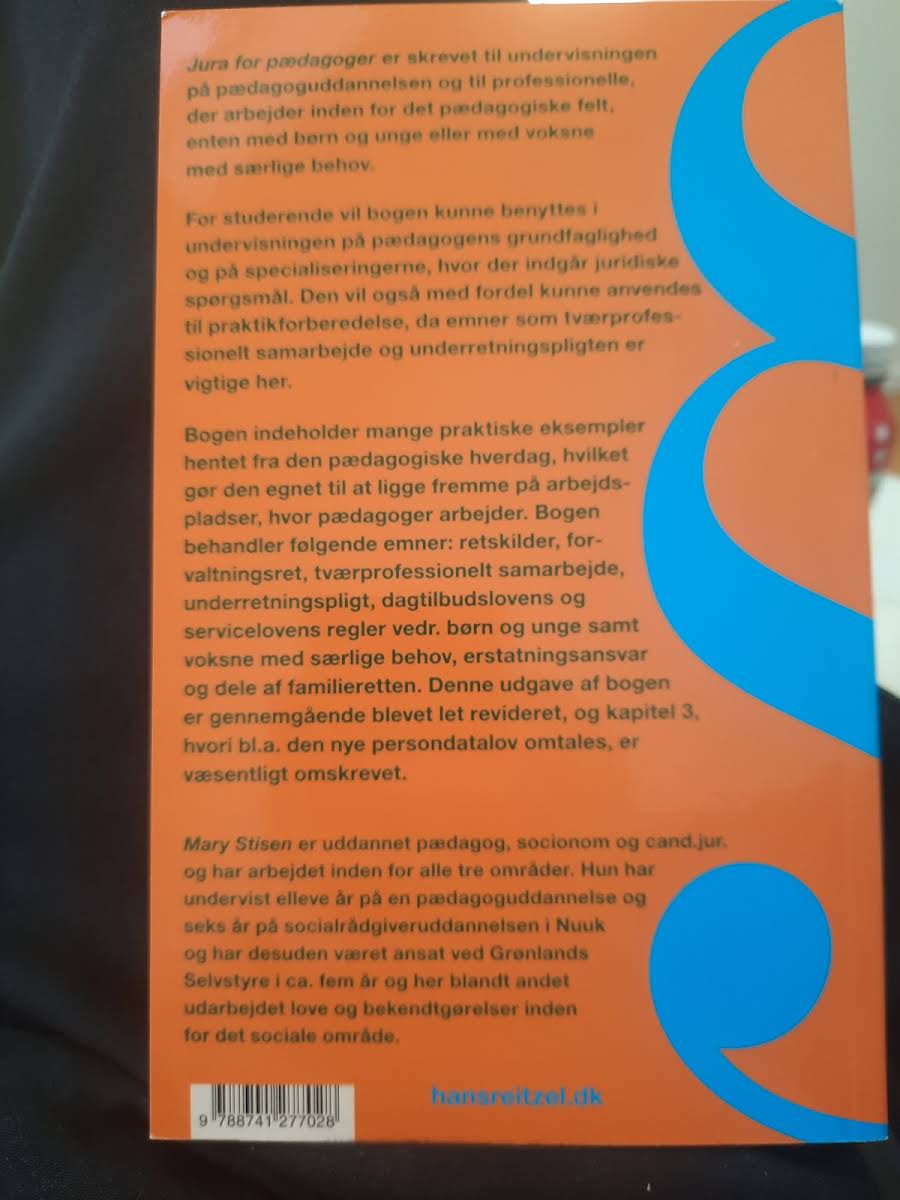 Jura for pædagoger henvender sig til både studerende og fagfolk, der arbejder med børn, unge og voksne med særlige behov. Bogen er målrettet undervisningen på pædagoguddannelsen og kan anvendes i de faglige kurser, hvor juridiske perspektiver er en integreret del af pensum. Med praktiske eksempler fra den pædagogiske hverdag giver værket en bred forståelse for centrale juridiske emner såsom retskilder, forvaltningsret, tværprofessionelt samarbejde, servicelovens regler, dagtilbudsloven, erstatningsretlige forhold samt dele af familieretten. Den er desuden et værdifuldt redskab i praktikforberedelsen, især i forhold til emner som underretningspligten. Mary Stisen, der kombinerer sin baggrund som pædagog, socionom og cand. jur., trækker på mange års erfaring fra både undervisning og praksis. Den tredje udgave af bogen, udgivet i 2019 og på 198 sider, er derfor et essentielt værktøj for alle inden for det pædagogiske felt.