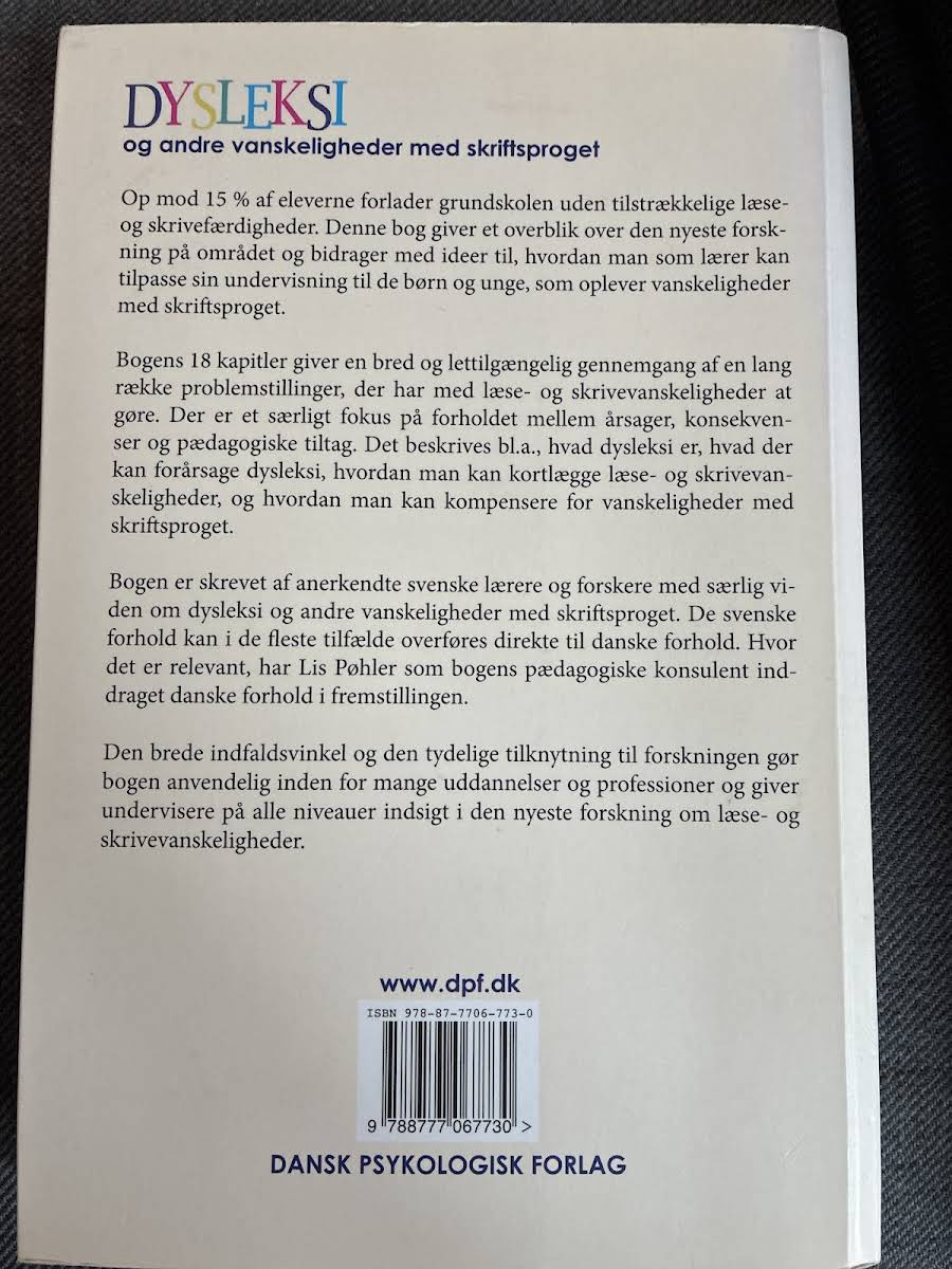 I "Dysleksi og andre vanskeligheder med skriftsproget" stiller Stefan Samuelsson skarpt på, hvordan dysleksi og andre vanskeligheder med skriftsproget opstår og kan imødekommes. Gennem en bred gennemgang af biologiske, pædagogiske og psykologiske perspektiver bliver læseren præsenteret for den nyeste forskning og de mest anvendte metoder inden for området. Bogen giver en klar og lettilgængelig introduktion til, hvad dysleksi indebærer, og hvordan man både kan kortlægge og behandle problematikken. Samuelsson og en række erfarne bidragydere belyser desuden de mange myter, der findes omkring læse- og skrivevanskeligheder, og viser, hvordan specialpædagogiske tiltag kan være med til at komplicere eller lette hverdagen for dem, der kæmper med disse udfordringer.