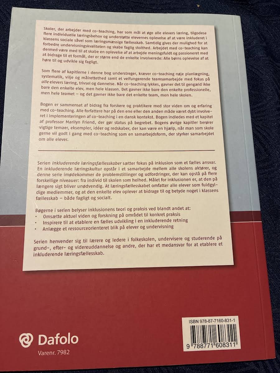 I "Godt i gang med co-teaching – sammen om alle elever" præsenteres et inspirerende indblik i, hvordan co-teaching kan styrke læringsmiljøet for alle elever. Bogen understreger, at samarbejdet mellem undervisere ikke blot øger den enkelte elevs læring og trivsel, men også skaber en inkluderende kultur, hvor alle føler sig som vigtige bidragydere. Gennem nøje planlagte metoder og praktiske redskaber vises det, hvordan et velfungerende team kan omsætte idéer til konkret praksis. Bidrag fra både forskere og praktikere, som alle har haft tæt kontakt med co-teaching i en dansk kontekst, skaber en bred forståelse af de muligheder, denne undervisningsform giver – fra den enkelte klasse til hele skolen. Med fokus på målrettet planlægning, systematik og et stærkt samarbejde fremhæver bogen, hvordan co-teaching kan føre til øget faglig stolthed og et læringsfællesskab, hvor alle elever udvikles både socialt og fagligt. Denne første udgave fra 2018 giver et solidt udgangspunkt for alle, der ønsker at implementere co-teaching som en bæredygtig og inkluderende undervisningsform.