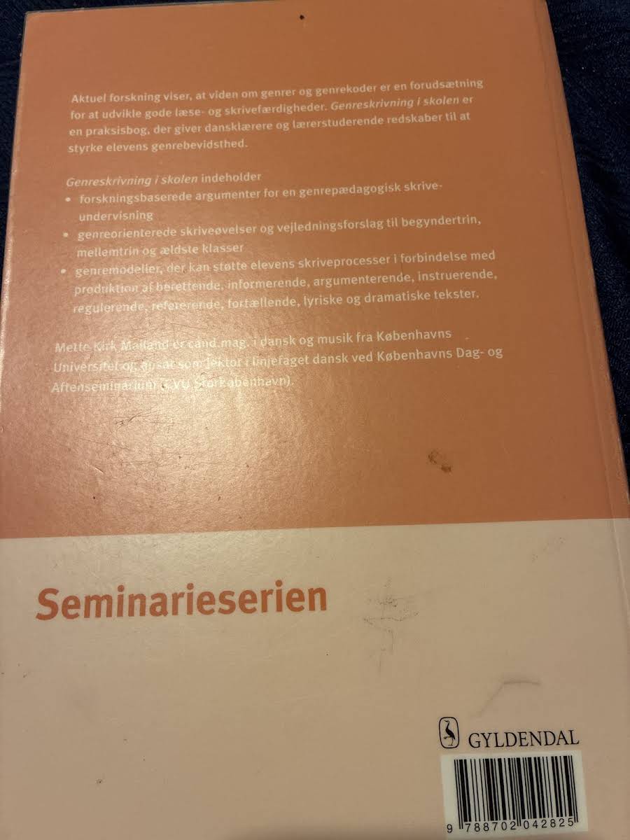 Genreskrivning i skolen af Mette Kirk Mailand er en praksisbog, der henvender sig til dansklærere og lærerstuderende med ambitionen om at styrke elevernes genrebevidsthed. Bogen lægger vægt på en skrivepædagogisk tilgang, der understøttes af forskningsbaserede argumenter for en effektiv genrepædagogisk undervisning. Med et væld af genreorienterede skriveøvelser og vejledningsforslag, der henvender sig til både begynder-, mellem- og ældste klassetrin, tilbyder bogen praktiske redskaber til at arbejde med en bred vifte af teksttyper. Fra berettende og informerende til argumenterende, instruerende, regulerende, refererende, fortællende, lyriske og dramatiske tekster, kan de medfølgende genremodeller støtte elevernes skriveprocesser. Bogen er en inspirerende ressource, der giver konkrete eksempler og værktøjer til at udfolde undervisningen i genreskrivning, og den understreger vigtigheden af, at eleverne opnår en solid forståelse for tekstgenrenes særpræg og muligheder.