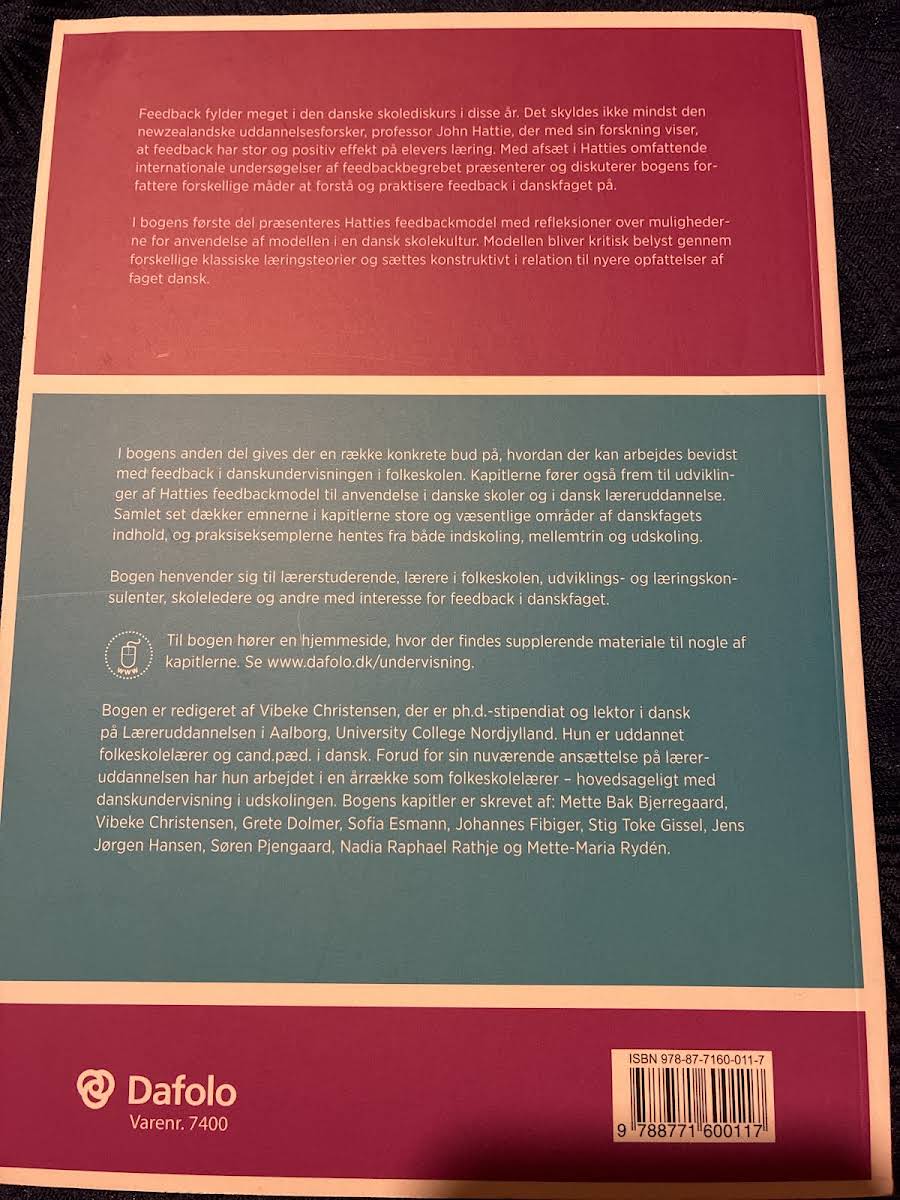 • Feedback i danskfaget (inkl. hjemmeside), Sofia Esmann, Grethe Dolmer, Mette Bak Bjerregaard, Stig Toke Gissel, Johannes Fibiger, Mette-Maria Rydén, Søren Pjengaard, Jens Jørgen Hansen, Nadia Rathje, 9788771600117