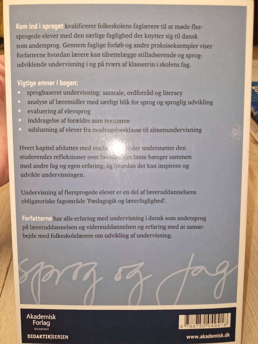 Med "Kom ind i sproget" får folkeskolens lærere et solidt redskab til at møde flersprogede elever med den nødvendige pædagogiske og sprogdidaktiske faglighed. Bogen lægger vægt på, hvordan undervisningen kan tilpasses for at styrke elevernes danske sprogudvikling og samtidig skabe en inkluderende læringskultur, hvor dialog og refleksion går hånd i hånd. Gennem en række praksiseksempler og faglige forløb præsenteres centrale emner som sprogbaseret undervisning med fokus på samtale, ordforråd og literacy, samt evaluering af elevsprog og analyse af læremidler med henblik på sproglig udvikling. Hvert kapitel afsluttes med studieopgaver, der inspirerer til tværfaglige forbindelser og understøtter den enkelte lærers egne erfaringer. Forfatterne Stine Kragholm Knudsen og Lone Wulff trækker på deres mangeårige erfaring med undervisning i dansk som andetsprog i både læreruddannelsen og videreuddannelsen, hvilket giver bogen en praktisk og reflekteret tilgang til et fagligt relevant emne.