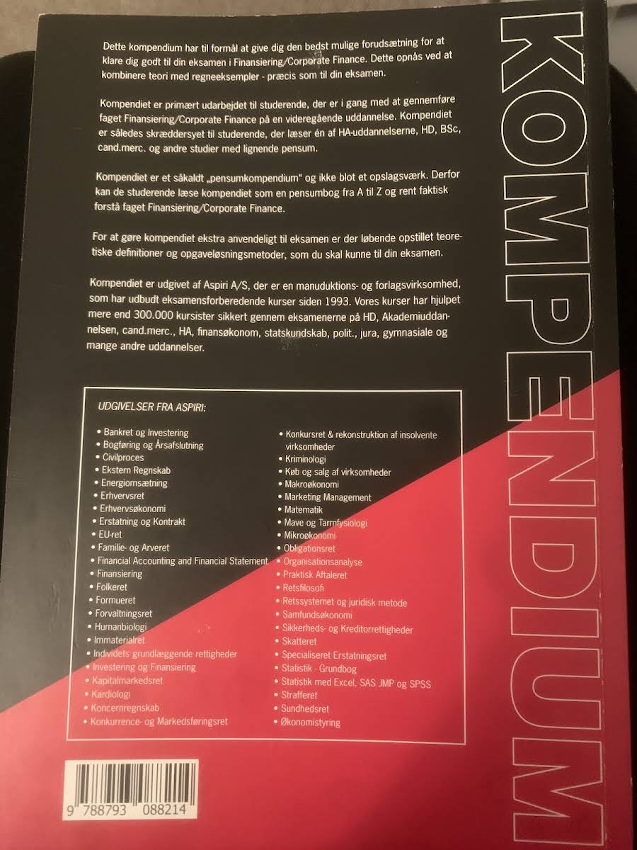 Dette kompendium i Finansiering (Corporate Finance) er skabt med henblik på at give de studerende solide forudsætninger for at mestre faget. Ved at kombinere teori med praktiske regneeksempler opnår du en dybdegående forståelse, som er essentiel til din eksamen og videre studier inden for finansiering. Kompendiet er udarbejdet specielt til studerende på videregående uddannelser, og det henvender sig til dem, der læser uddannelser som HA, HD, BSc, cand.merc. eller lignende. Med sit fokus på de centrale elementer af faget fungerer bogen som et fuldstændigt pensumkompendium, der dækker hele spektrummet fra grundlæggende teorier til praktiske opgaveløsningsmetoder.
