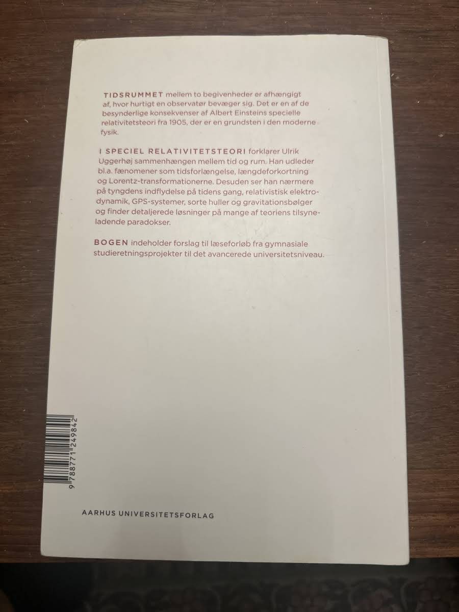 Tidsrummet mellem to begivenheder afhænger af observatørens hastighed - en af de overraskende konsekvenser af Albert Einsteins specielle relativitetsteori fra 1905, som danner grundlaget for moderne fysik. I Speciel relativitetsteori fører Ulrik I. Uggerhøj læseren sikkert gennem tid og rum og præsenterer beregningerne bag fænomeners fundament. Du møder udledninger af tidsforlængelse, længdeforkortning og Lorentz-transformationer, der alle er centrale elementer i teorien. Forfatteren kaster desuden lys over, hvordan tyngdekraften påvirker tidsforløb, og du får en introduktion til sorte huller samt gravitationsbølger. Flere klassiske paradokser behandles med klare forklaringer og løsningsforslag, så teoriens indre sammenhæng bliver tydelig. Bogen henvender sig til vidt forskellige læseforløb - fra gymnasiale studieretningsprojekter til avancerede universitetskurser - og indgår som et solidt opslagsværk for alle med interesse for relativitetsteori.