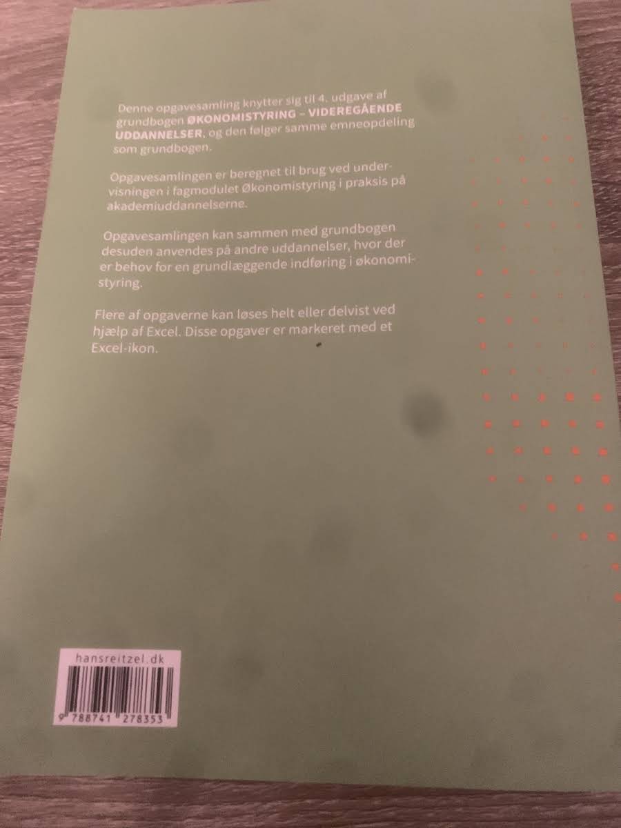 Denne opgavesamling er udarbejdet i tilknytning til den 4. udgave af grundbogen Økonomistyring - videregående uddannelser og følger nøje den samme emneopdeling. Materialet er designet som et supplement til undervisningen i fagmodulet "Økonomistyring i praksis" på akademiuddannelserne. Samarbejdet med grundbogen gør opgavesamlingen velegnet til andre uddannelser, hvor der ønskes en grundlæggende introduktion til økonomistyring. Bogen tilbyder et solidt redskab til både undervisere og studerende, der søger praktisk indsigt og forståelse for faget.