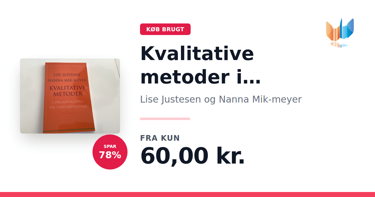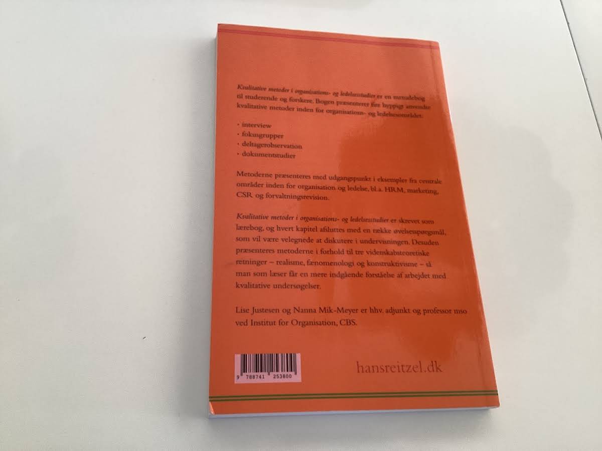 Kvalitative metoder i organisations- og ledelsesstudier er en metodebog for både studerende og forskere, som præsenterer de fire mest anvendte kvalitative metoder inden for organisation og ledelse: interview, fokusgrupper, deltagerobservation og dokumentstudier. Bogen illustrerer metoderne med praktiske eksempler fra centrale områder såsom HRM, marketing, CSR og forvaltningsrevision – og giver dermed et godt udgangspunkt for at forstå, hvordan kvalitative metoder kan anvendes i praksis. Bogen er opbygget som en lærebog, hvor hvert kapitel afsluttes med øvelsesspørgsmål, der inspirerer til refleksion og diskussion. Desuden belyses metoderne ud fra tre videnskabsteoretiske retninger – realisme, fænomenologi og konstruktivisme – hvilket bidrager til en nuanceret tilgang til kvalitative undersøgelser. Lise Justesen og Nanna Mik-Meyer giver med denne udgivelse et værdifuldt redskab til at navigere i organisations- og ledelsesforskningens verden.
