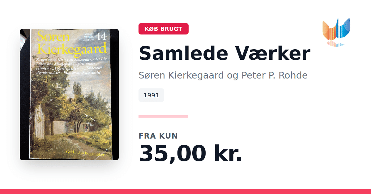 Lige nu kan du købe "Samlede Værker" af Søren Kierkegaard og Peter P. Rohde til kun 35,00 kr. Bogen du ser her er brugt, og i slidt stand. Vi har i øjeblikket kun et enkelt eksemplar til salg af "Samlede Værker", så slå til mens du kan!