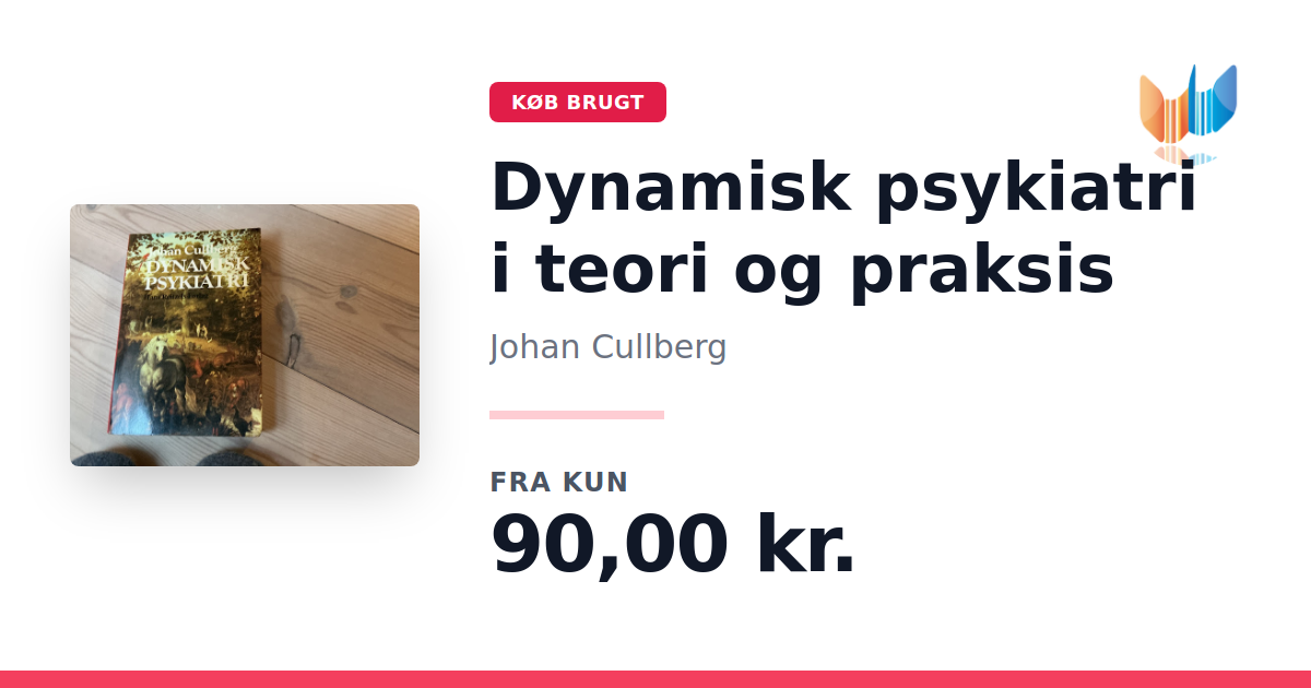 Lige nu kan du købe "Dynamisk psykiatri i teori og praksis" af Johan Cullberg til kun 90,00 kr. Bogen du ser her er brugt, og i perfekt stand. Vi har i øjeblikket 3 eksemplarer til salg af "Dynamisk psykiatri i teori og praksis", så husk at se de forskellige udgaver.