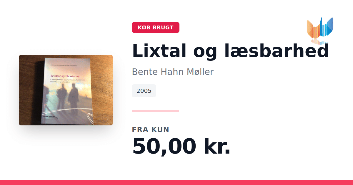 Lige nu kan du købe "Lixtal og læsbarhed" af Bente Hahn Møller til kun 50,00 kr. Bogen du ser her er brugt, og i perfekt stand. Vi har i øjeblikket kun et enkelt eksemplar til salg af "Lixtal og læsbarhed", så slå til mens du kan!
