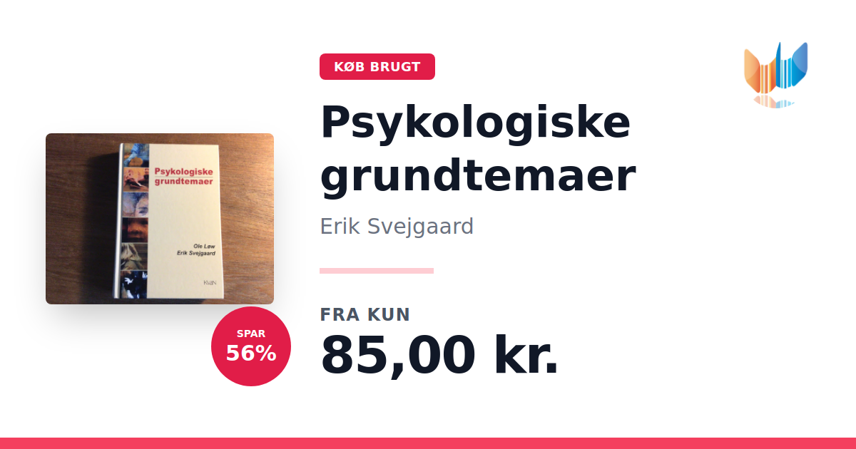 Lige nu kan du købe "Psykologiske grundtemaer" af Erik Svejgaard til kun 85,00 kr. Du sparer hele 56% af nyprisen! Bogen du ser her er brugt, og i perfekt stand. Vi har i øjeblikket 4 eksemplarer til salg af "Psykologiske grundtemaer", så husk at se de forskellige udgaver.