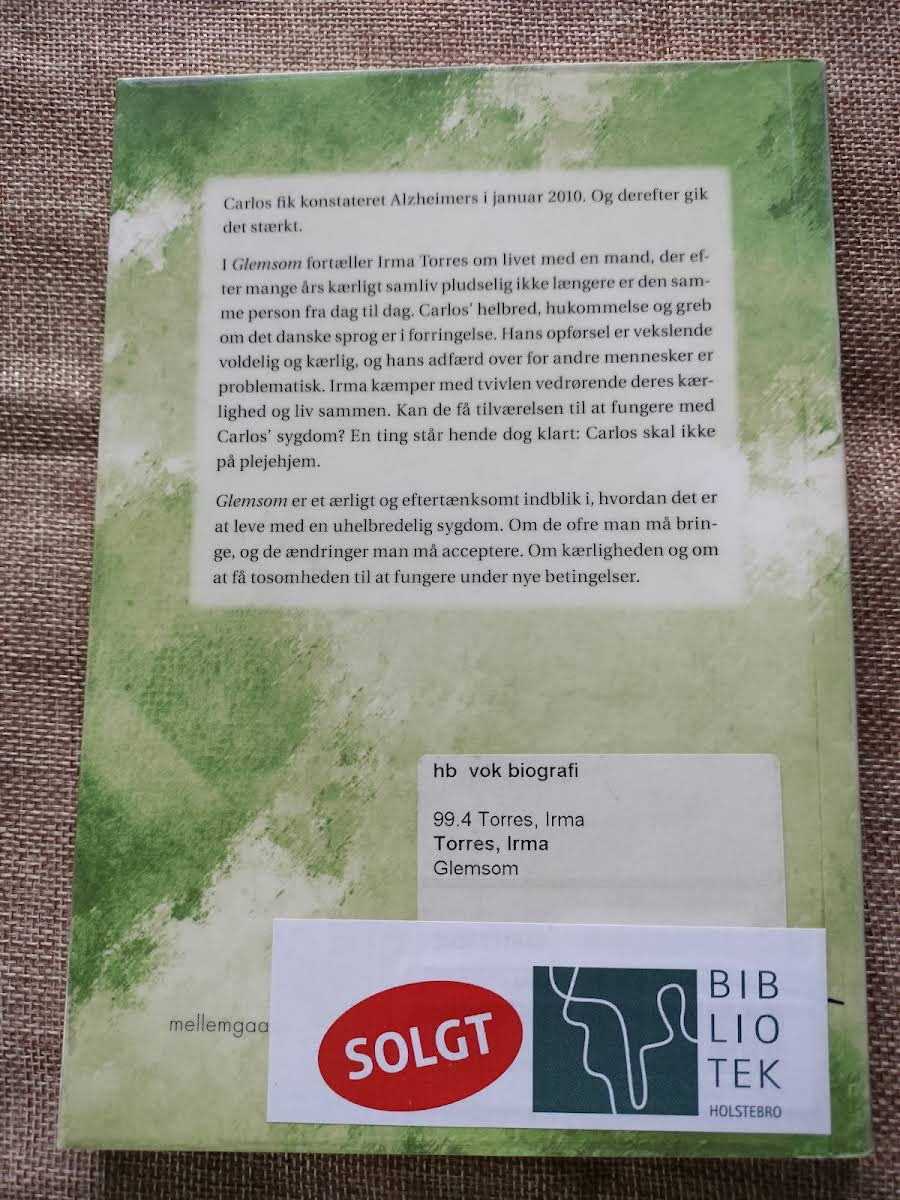 Lige nu kan du købe "Glemsom - Alzheimers, de pårørendes sygdom" af Irma Torres til kun 55,00 kr. Du sparer hele 59% af nyprisen! Bogen du ser her er brugt, og i god stand. Vi har i øjeblikket kun et enkelt eksemplar til salg af "Glemsom - Alzheimers, de pårørendes sygdom", så slå til mens du kan!