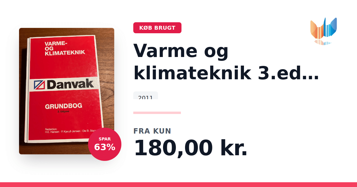 Lige nu kan du købe "Varme og klimateknik 3.ed Danvak Grundbog" til kun 180,00 kr. Du sparer hele 63% af nyprisen! Bogen du ser her er brugt, og i perfekt stand. Vi har i øjeblikket kun et enkelt eksemplar til salg af "Varme og klimateknik 3.ed Danvak Grundbog", så slå til mens du kan!