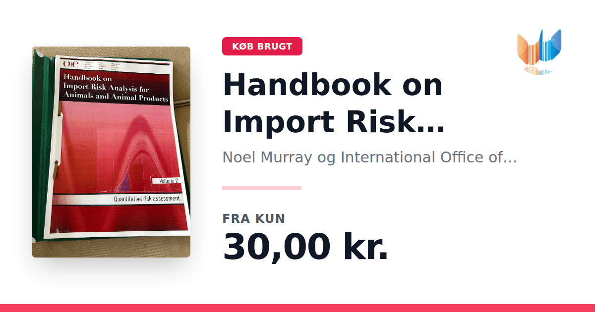 Lige nu kan du købe "Handbook on Import Risk Analysis for Animals and Animal Products: Introduction and qualitative risk analysis" af Noel Murray og International Office of Epizootics til kun 30,00 kr. Bogen du ser her er brugt, og i god stand. Vi har i øjeblikket kun et enkelt eksemplar til salg af "Handbook on Import Risk Analysis for Animals and Animal Products: Introduction and qualitative risk analysis", så slå til mens du kan!
