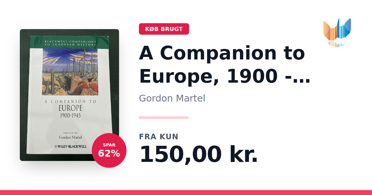 Udgivet i 2010 af Wiley-Blackwell, A Companion to Europe, 1900-1945 er redigeret af Gordon Martel og samler bidrag fra førende internationale historikere. Dette bind belyser de centrale debatter om Europas udvikling i første halvdel af det 20. århundrede. Bidragene dækker politiske, sociale og økonomiske perspektiver fra hele kontinentet. Bogen tilbyder et aktuelt overblik over forskningsdiskussionerne og kortlægger de store omvæltninger i perioden. Den analyserer politiske omstyrtninger, sociale forandringer og økonomiske kriser fra 1900 til 1945. Kombinationen af historiske og komparative tilgange kaster nyt lys over både kendte og mindre belyste emner. Værket fremhæver både klassiske problemstillinger og nyskabende forskningsfelter. Det pan-europæiske perspektiv synliggør ligheder og forskelle mellem nationer og regioner. En uundværlig kilde for alle, der ønsker en nuanceret forståelse af Europas omtumlede historie.