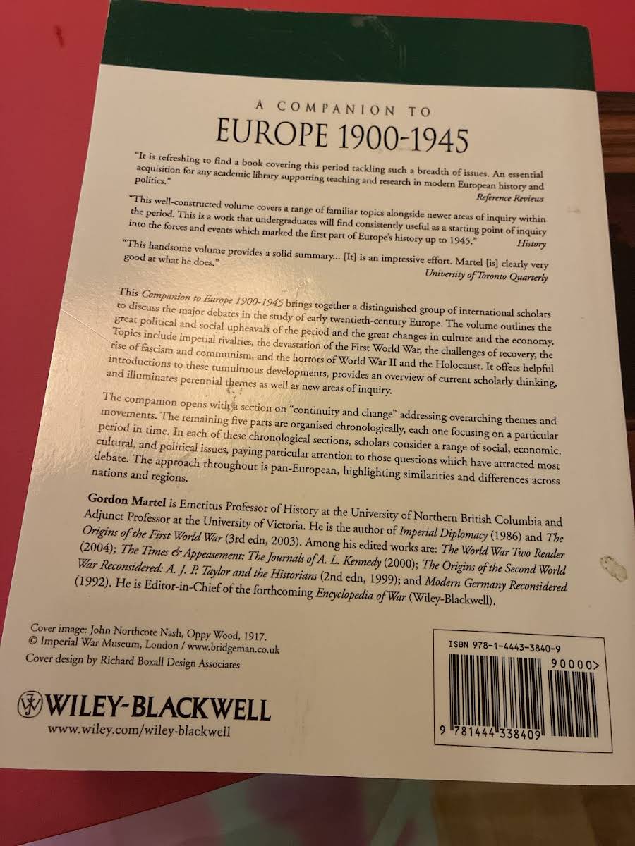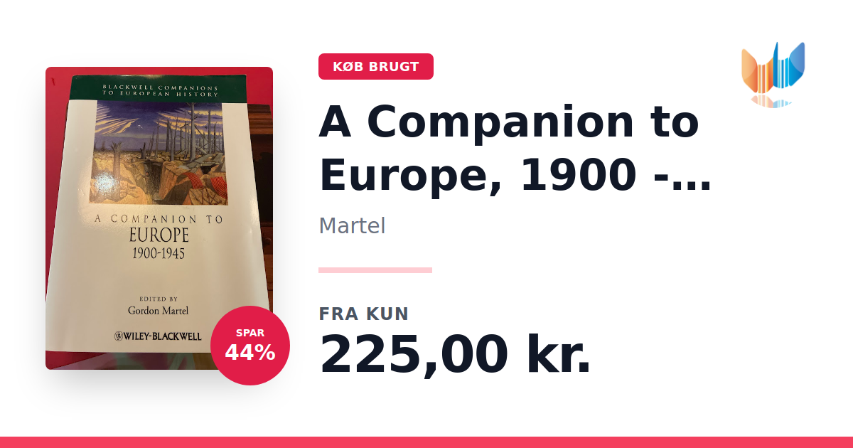 Udgivet i 2010 af Wiley-Blackwell, A Companion to Europe, 1900-1945 er redigeret af Gordon Martel og samler bidrag fra førende internationale historikere. Dette bind belyser de centrale debatter om Europas udvikling i første halvdel af det 20. århundrede. Bidragene dækker politiske, sociale og økonomiske perspektiver fra hele kontinentet. Bogen tilbyder et aktuelt overblik over forskningsdiskussionerne og kortlægger de store omvæltninger i perioden. Den analyserer politiske omstyrtninger, sociale forandringer og økonomiske kriser fra 1900 til 1945. Kombinationen af historiske og komparative tilgange kaster nyt lys over både kendte og mindre belyste emner. Værket fremhæver både klassiske problemstillinger og nyskabende forskningsfelter. Det pan-europæiske perspektiv synliggør ligheder og forskelle mellem nationer og regioner. En uundværlig kilde for alle, der ønsker en nuanceret forståelse af Europas omtumlede historie.