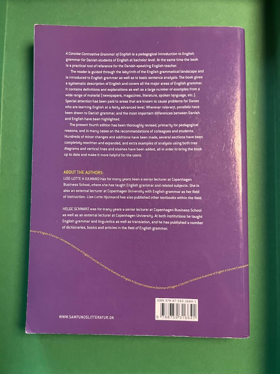Lige nu kan du købe "A Concise Contrastive Grammar of English for Danish Students" af Lise-Lotte Hjulmand til kun 150,00 kr. Bogen du ser her er brugt, og i god stand. Vi har i øjeblikket 4 eksemplarer til salg af "A concise contrastive grammar of English for Danish students", så husk at se de forskellige udgaver.