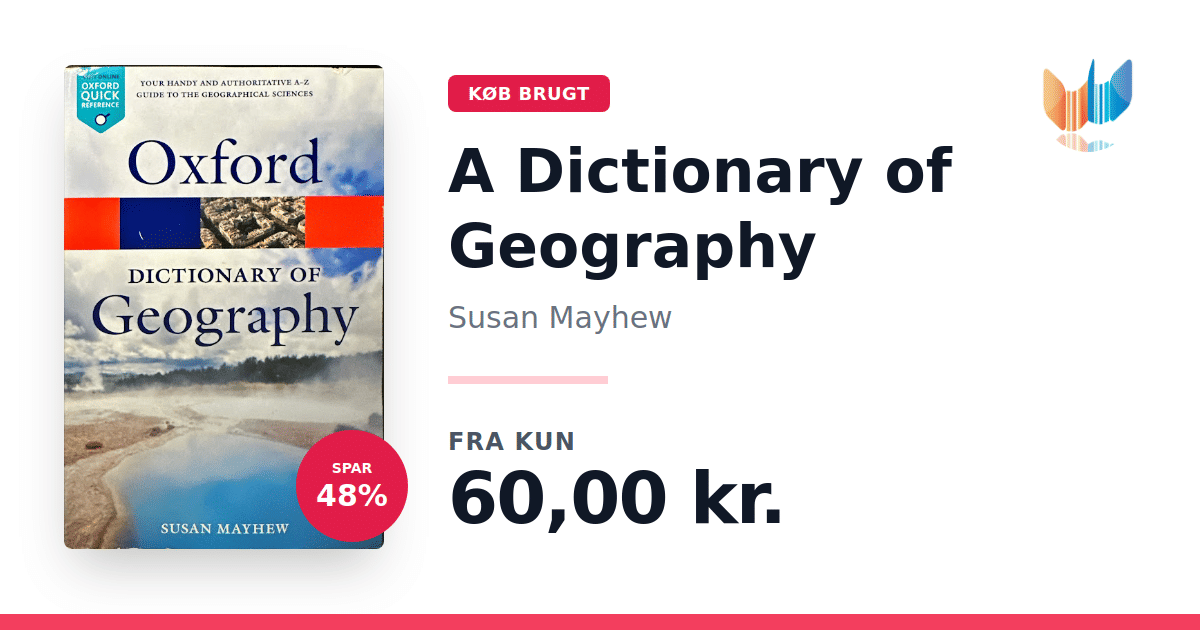Med over 3.100 opslag inden for både human- og fysisk geografi er A Dictionary of Geography den førende enkeltbindsreference på området. Opslagene omfatter alt fra kartografi og opmåling til meteorologi, klimatologi, økologi, befolkningsstudier, industri og udvikling. Mange emner er illustreret med konkrete eksempler og diagrammer - herunder 15 nye illustrationer. Denne paperback-udgave på 576 sider udgør 5. udgave fra 2015, udgivet af Oxford University Press. Alle eksisterende opslag er gennemgribende revideret og opdateret, med udvidet dækning af Geographical Information Systems (GIS) og glaciale geomorfologiske fænomener. Desuden er definitionerne beriget med flere internationale eksempler. Over 400 helt nye opslag er tilføjet, heriblandt begreber som economies of scope, marginalisation, rurality samt skatteparadiser og offshore-finanscentre. For mange opslag anbefales relevante netlinks, der løbende vedligeholdes via det tilhørende Dictionary of Geography-website. Med sit præcise, klare og autoritative sprog er A Dictionary of Geography uundværlig for alle studerende og undervisere i geografi - et A-Å opslagsværk, der samler fagets centrale begreber ét sted.