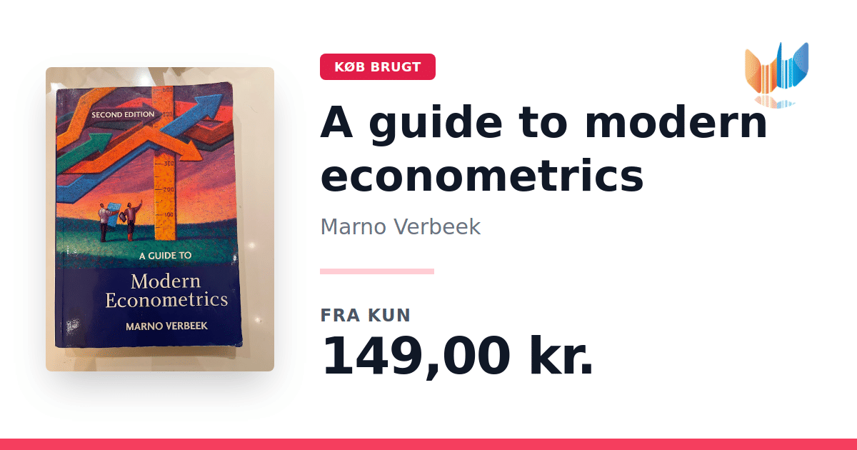 Lige nu kan du købe "A guide to modern econometrics" af Marno Verbeek til kun 149,00 kr. Bogen du ser her er brugt, og i god stand. Vi har i øjeblikket 2 eksemplarer til salg af "A Guide to Modern Econometrics", så husk at se de forskellige udgaver.