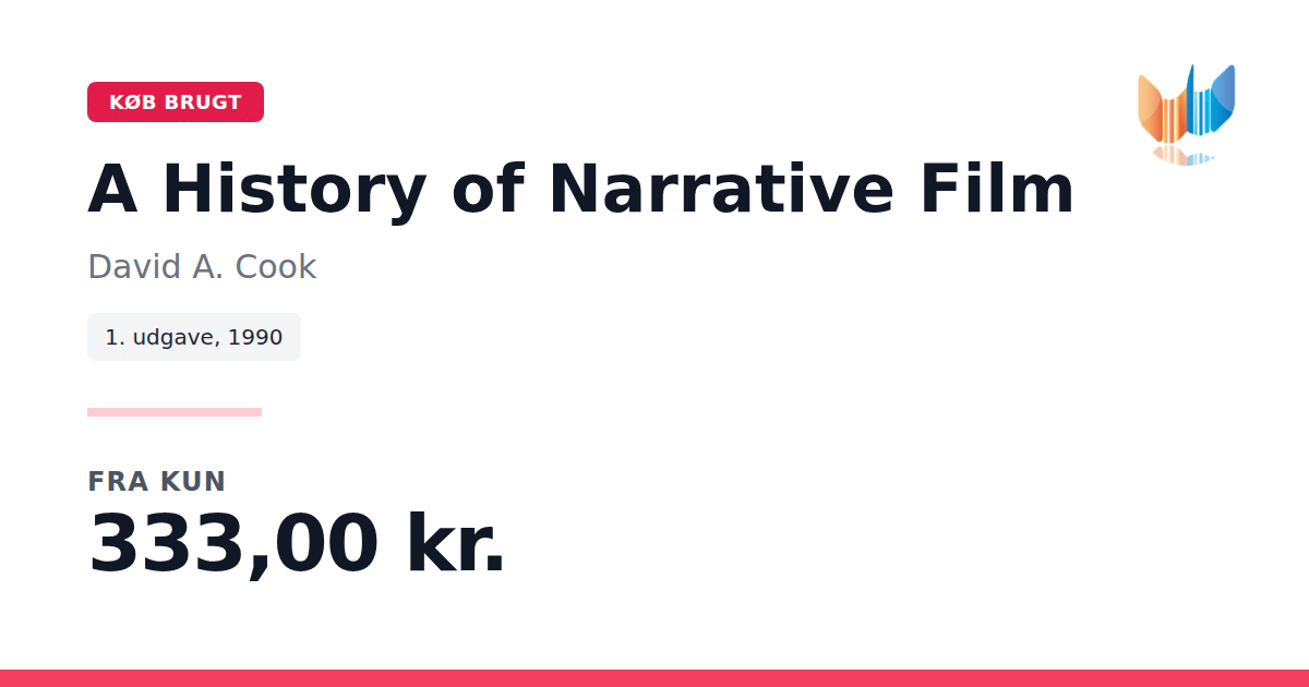 A History of Narrative Film af David A. Cook er en autoritativ gennemgang af filmens udvikling fra de tidligste stumfilm til moderne fortælleformer. Bogens struktur er kronologisk opbygget og kombinerer en detaljeret filmhistorie med en introduktion til filmteori og æstetik. Gennem kapitlerne belyses de institutionelle kræfter - økonomiske, teknologiske, sociale og politiske - som har formet biograflærredets udvikling. Samtidig sættes fokus på de enkelte kunstneres visioner og kreative metoder, der har trukket narrativ filmkunst i nye retninger. Med sine 981 sider i paperback-udgave fra W. W. Norton (1990) henvender værket sig til studerende, undervisere og alle filmelskere, der ønsker et grundigt indblik i både filmhistorien og dens komplekse samspil mellem struktur og individualitet.