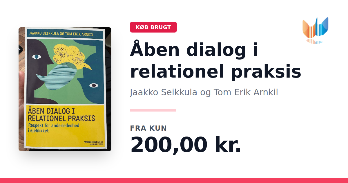 Lige nu kan du købe "Åben dialog i relationel praksis" af Jaakko Seikkula og Tom Erik Arnkil til kun 200,00 kr. Bogen du ser her er brugt, og i perfekt stand. Vi har i øjeblikket kun et enkelt eksemplar til salg af "Åben dialog i relationel praksis", så slå til mens du kan!