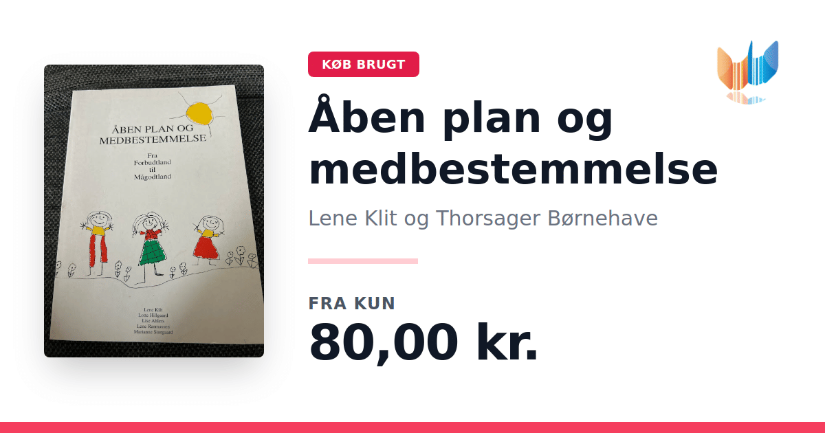 Lige nu kan du købe "Åben plan og medbestemmelse" af Lene Klit og Thorsager Børnehave til kun 80,00 kr. Bogen du ser her er brugt, og i perfekt stand. Vi har i øjeblikket kun et enkelt eksemplar til salg af "Åben plan og medbestemmelse", så slå til mens du kan!