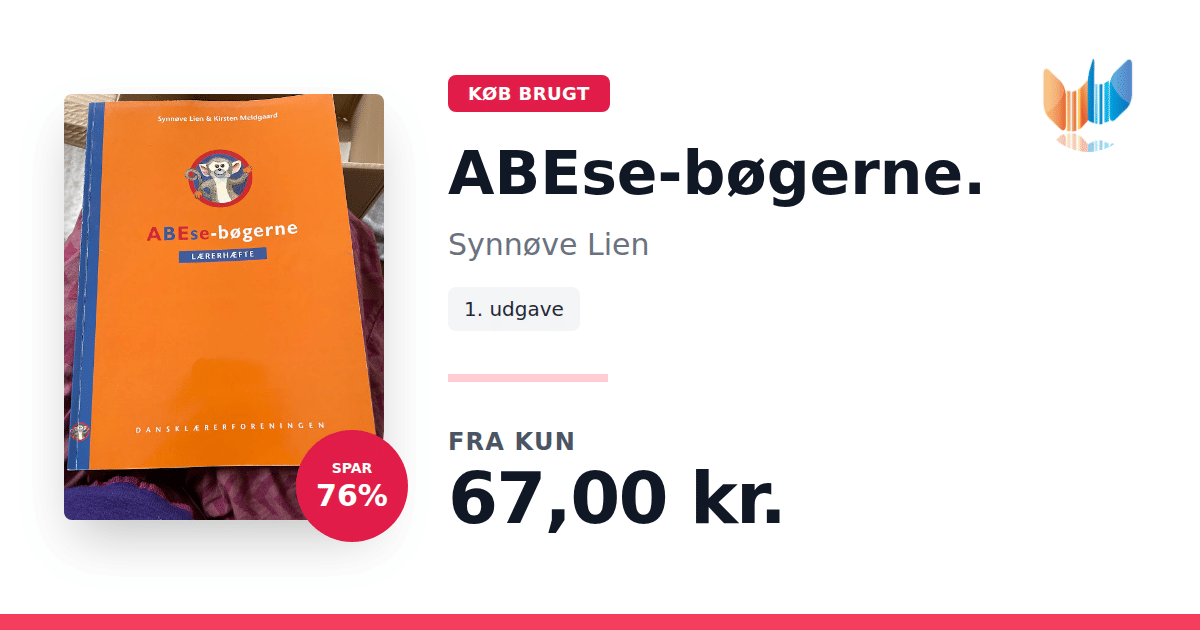 Lige nu kan du købe "ABEse-bøgerne." af Synnøve Lien til kun 67,00 kr. Du sparer hele 76% af nyprisen! Bogen du ser her er brugt, og i god stand. Vi har i øjeblikket kun et enkelt eksemplar til salg af "ABEse-bøgerne.", så slå til mens du kan!