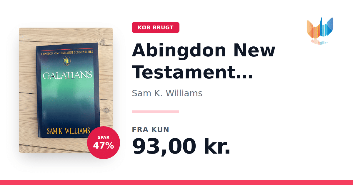 Lige nu kan du købe "Abingdon New Testament Commentaries" af Sam K. Williams til kun 93,00 kr. Du sparer hele 47% af nyprisen! Bogen du ser her er brugt, og i perfekt stand. Vi har i øjeblikket 2 eksemplarer til salg af "Abingdon New Testament Commentaries", så husk at se de forskellige udgaver.