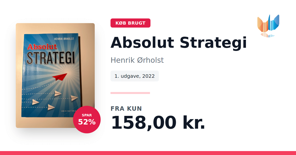 Lige nu kan du købe "Absolut Strategi" af Henrik Ørholst til kun 158,00 kr. Du sparer hele 52% af nyprisen! Bogen du ser her er brugt, og i god stand. Vi har i øjeblikket kun et enkelt eksemplar til salg af "Absolut Strategi", så slå til mens du kan!