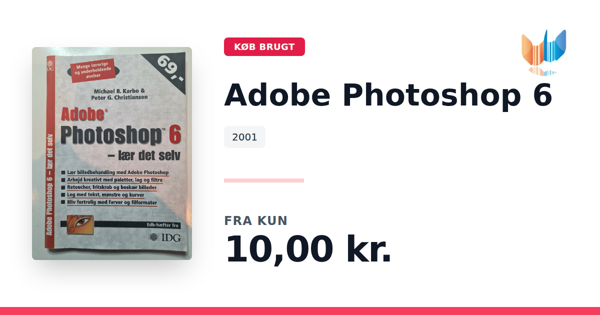 Lige nu kan du købe "Adobe Photoshop 6" til kun 10,00 kr. Bogen du ser her er brugt, og i god stand. Vi har i øjeblikket kun et enkelt eksemplar til salg af "Adobe Photoshop 6", så slå til mens du kan!
