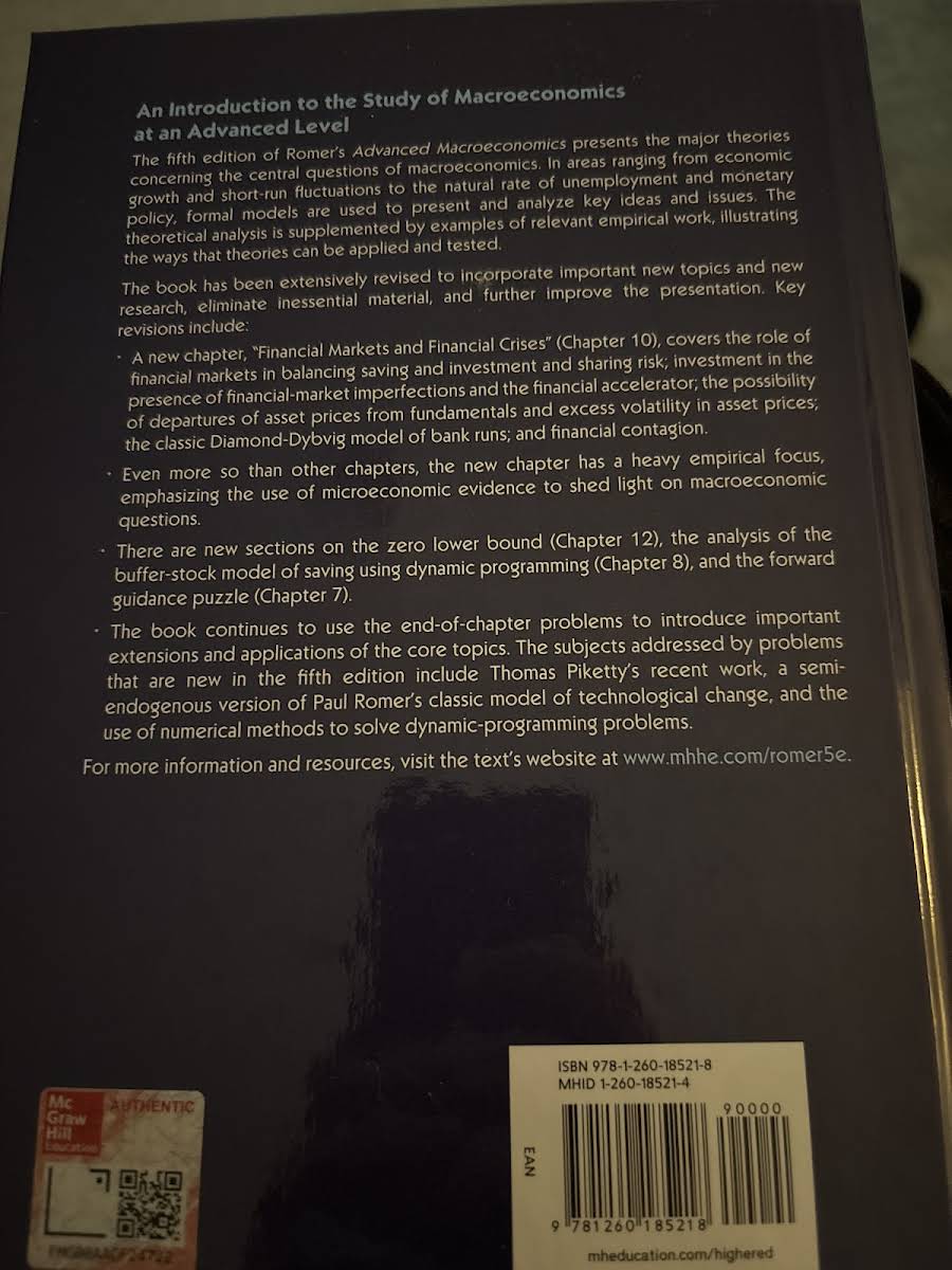 The fifth edition of Advanced Macroeconomics by David Romer offers a rigorous exploration of graduate-level macroeconomic theory. This edition delves into central topics such as economic growth, short-run fluctuations, the natural rate of unemployment, and monetary policy, integrating formal models with illuminating empirical examples. The text serves as an essential foundation for students aiming to engage in research within the realms of macroeconomics and monetary economics. Carefully revised for its 2018 release, this edition streamlines content to focus on critical ideas while incorporating significant new research and topics. David Romer’s clear and methodical approach makes Advanced Macroeconomics a vital resource for those seeking a deep and comprehensive understanding of modern macroeconomic thought.