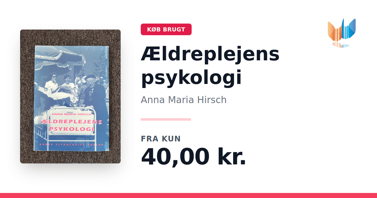 Lige nu kan du købe "Ældreplejens psykologi" af Anna Maria Hirsch til kun 40,00 kr. Bogen du ser her er brugt, og i god stand. Vi har i øjeblikket kun et enkelt eksemplar til salg af "Ældreplejens psykologi", så slå til mens du kan!